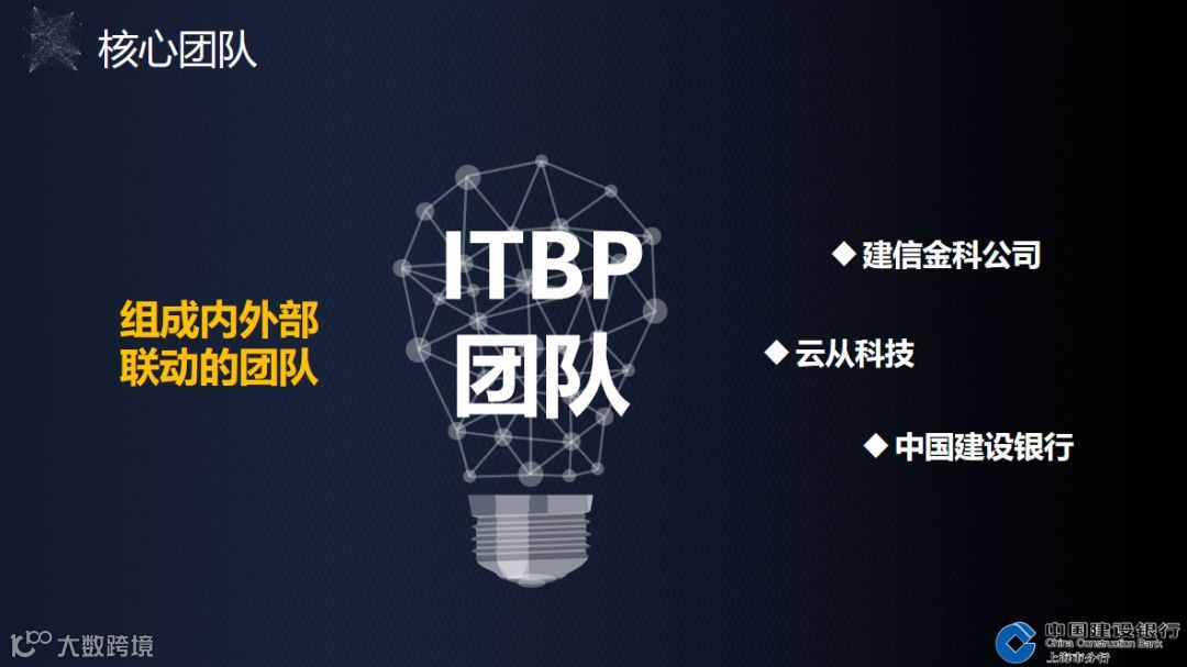 为了更好建设“未来银行”应用场景,上海市分行将在总行大力支持下,邀请建信金科公司、云从科技加盟,组成内外部联动的ITBP团队,入驻上海产品创新实验室集中孵化。