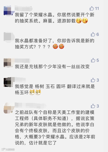 后续因为锚点事件耽搁下来五虎将皮肤也将陆续上线,下个赛季伊始又将是一波「氪金潮」。倘若接下来真的会推出新的抽奖系统,大家会为了李白的新皮肤而氪金吗?