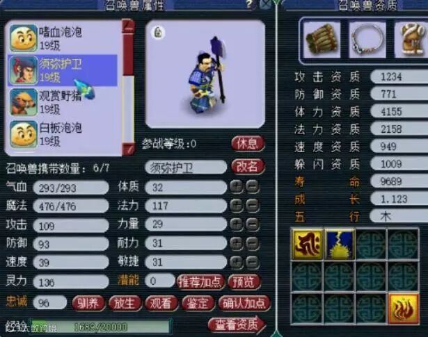 这位9级玩家已经可以携带7只召唤兽了。护卫,一直都是召唤兽中的个性宠,这只须弥护卫怎么样?也不知道这位玩家是自己合的还是购买所得。