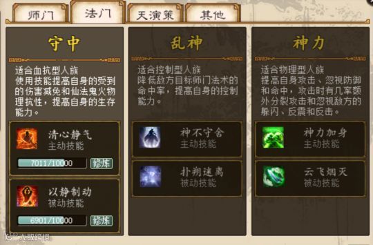 再说一点关于法门的选择,在法门面板的介绍中其实已经说得很清楚了,根据不同类型选择相应的法门即可,例如在日常或PVP中,守中法门的应用率最高,而乱神主要是针对冰睡控制的女人,神力则是针对大力,非常好理解。