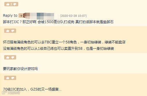 很多国服老玩家都对TBC这个版本有着特殊的情怀,应该当初国服的WLK因为各种原因迟迟不开,TBC也成为了国服老玩家们玩的最久的一个资料片了。有了60级怀旧服的先例,恐怕到时候TBC怀旧服一上线,玩家们肯定又会立刻被排队的恐惧所支配。小伙伴们对于TBC怀旧服有什么看法呢?欢迎在下方留言。