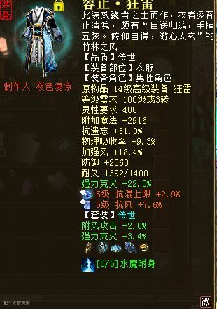 套装传世很重要,好大炮 魔王造 克火最佳搭配就是容止+紫阳+火麟 强法增加16点 克增加100点 套装属性洗练可以增加强克接近40点。