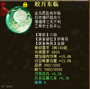护身符自然是要性价比最高的忽视+狂暴了 当时是188块买的 当时买的急了一些 价格可以更低的 如果黄字不带召唤兽伤害的话 大概的价位是80左右: