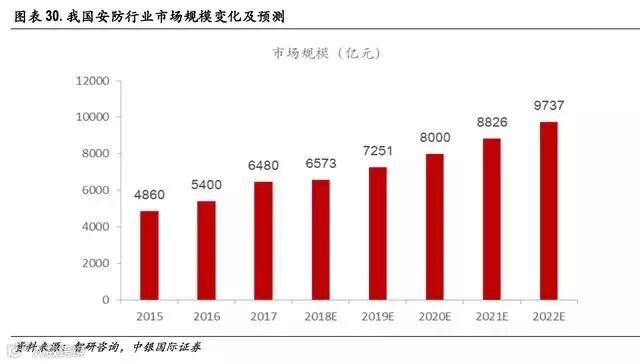 随着“平安城市”建设进程的推进,我国的安防行业保持了快速发展的势头,安防产业链不断完善,市场规模持续增长。据智研咨询发布的报告,2022年我国安防行业市场规模将会达到9737亿元。