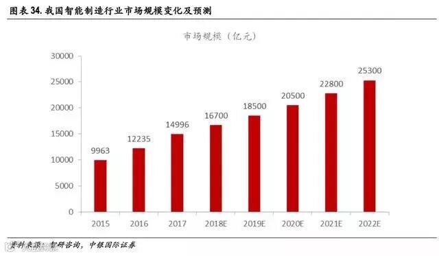 根据智研咨询发布的数据,2017年,中国智能制造产业规模将近15000亿元,预计到2022年市场规模将超过25300亿元,随着国家对工业智能制造的不断推动,我们预测到2022年基于边缘计算技术的智能制造渗透率至少达到60%,即市场规模将达到15180亿元。