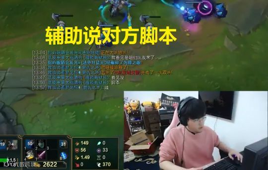 姿态发现对面ADC是带妹子一起玩的,就打字告诉锤石:“钩对面辅助”,果不其然锤石一钩璐璐就钩中了并轻松击杀,这一钩给锤石带了很大自信,锤石就紧接着钩女警,但好几次都是差一点,这时锤石就打字说:“对面这个人是脚本。”