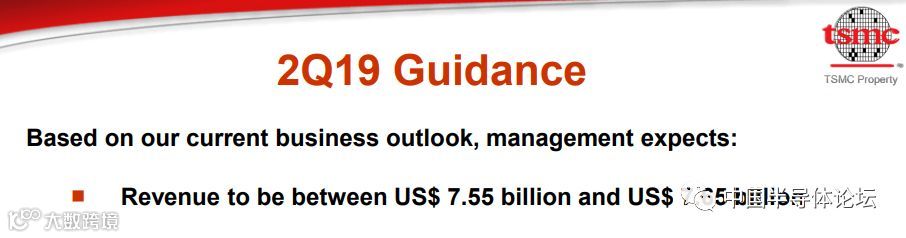 季度数据方面,台积电Q2营收2410亿新台币(约合人民币532.6亿元),高于公司在Q1给的业绩指引上限2360亿新台币(按1USD=30.85NTD汇率折算),同比增长3.3%。不过,由于Q1的业绩拖累,台积电2019上半年的业绩同比负增长4.5%。