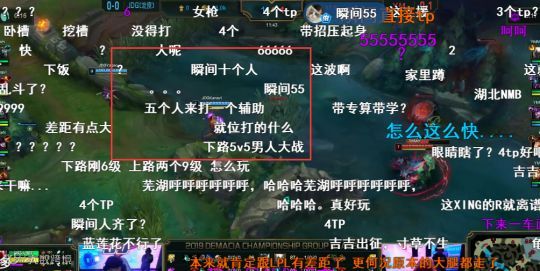 除此之外,这场比赛中也出现了十分多的“人类迷惑行为”。比如在11分钟之时,下路女坦开泰坦,YM战队全员交TP,导致JDG战队也跟着交TP,导致了十个人在下路杀辅助的局面,令网友们直呼看不懂。