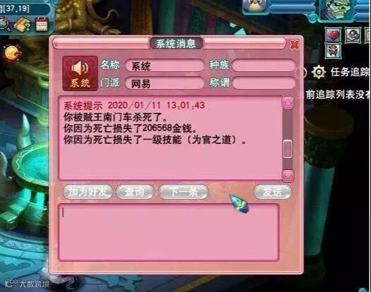 这应该是今年最惨的大唐玩家了,辛辛苦苦打图,好不容易攒了点钱,结果打不过贼王直接掉了20W的金钱,这可是半车宝图的辛苦钱啊。