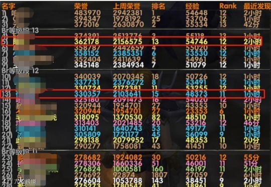 如果你是辛迪加的土著,那么你可能也会知道有这位一位R14风剑玩家。此前他因为战场9保1怒刷上了R14,在上一波封禁7天的整治当中被冻结了7天。可以看到7天没刷,他的级别已经掉了下来,不过解冻之后立刻又回到了9保1的节奏里,一天刷五六十万荣誉,R13的进度条已经刷了一大半,重回R14指日可待。