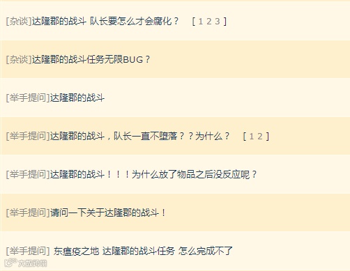 CTM时期WOW的旧大陆被全面重制,很多经典任务都相应进行了改动,现在的怀旧服是在120级游戏版本的基础上改制的,因此“达隆郡的战斗”这个任务也在玩家们的实战当中遇到了BUG。但由于之前遇到BUG和没有出BUG的玩家都有,也不知道这个问题后续是否有修正。
