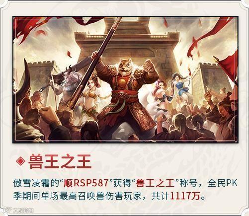 一个月大战中,众多高手们在其中也留下了自己值得纪念的瞬间,例如龙争虎斗服务器的玩家“公子”,以PK季单场回血2474万成为“最强奶妈”;而“傲雪凌霜”服务器的玩家“顺RSP587”, 以单场召唤兽最高伤害1117万,成为了PK季中当之无愧的“兽王”;龙城飞将服务器的玩家“爱の爆炸装置”,则以单场收割132个人头成为“残暴刽子手”...
