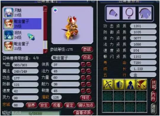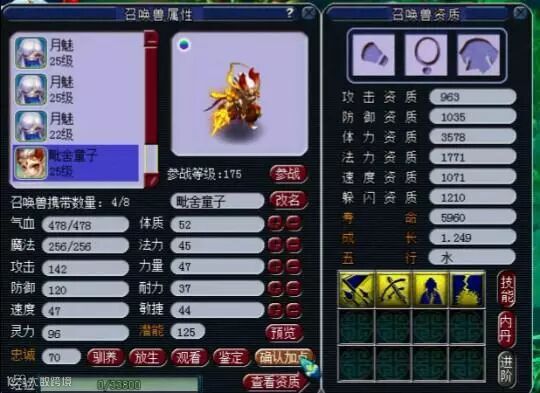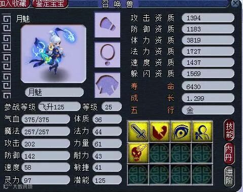 出了主宠!近1200的功资,934的速度资质,还有1.229的逆天成长!如果吃上2年元宵是一只不错的捉鬼宝宝!可惜技能还是有点少了,如果有7个技能就可以打成杀人宠,可惜。
