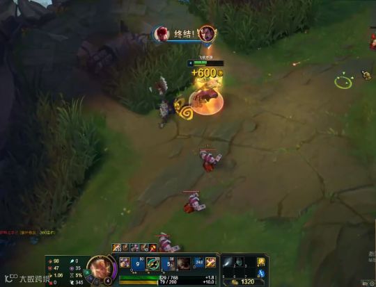 LWX这一把的瞎子也成功秀了起来,在上路一波GANK中,拿到了诺手的人头加上赏金,总共价值600金!