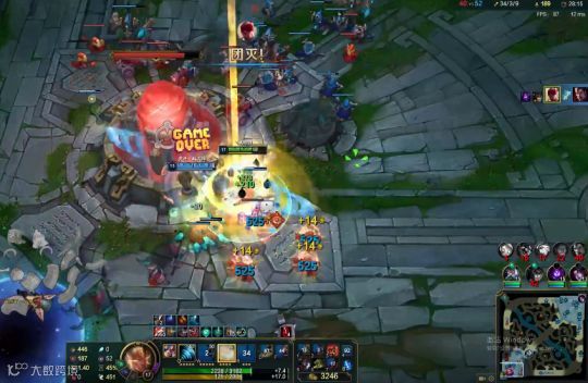 瞎子两段Q就已经四层征服者,再加上平A接E,还有被动的攻速加成,很快就叠满了征服者的效果,征服者打出来后自己再配合上W技能的吸血,单挑基本上无敌!