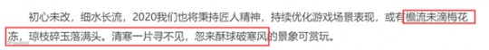 第二部分的最后一条是对游戏尝尽的优化,不过从这首高逼格的诗词中可以看出,2020年的游戏优化绝不简单,很可能会加入众多动态的场景和设计,届时或许能看到一个鲜活动感,根草毕现的新世界,这里只能说敬请期待吧,相信在游戏的颜值雕琢方面,大话一定不会令我们失望!