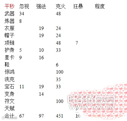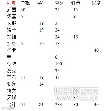 还有很多细节,都在表格里列出来了,相较而言,程度的投资是非常之大的,例如武器和项链还有护身符,这些装备都算添加;