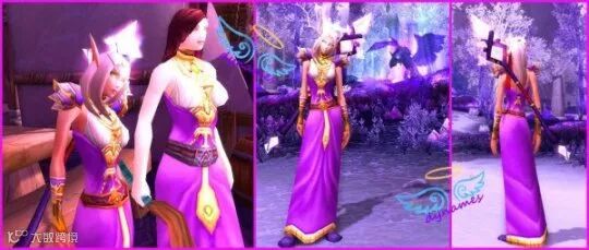 这件衣服的模型是一件华丽的紫色长袍,非常漂亮,是收藏家们必收藏的衣服,正式服里还有很多玩家喜欢幻化成这一套。