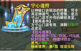 定神仙琴:解除自己的异常状态,提升50%抵抗封印能力,持续3回合。