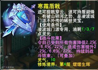 铁柱:法系门派灵宝提升伤害不高,倒是可以使用战神宝典。那么凌波城作为神威主流物理门派,他的的灵宝“寒霜盾戟”效果如何呢?