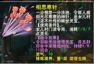 神厨:女儿村的灵宝能封别人灵宝和降封印,个人感觉意义不是很大,因为女儿村这个门派的封印技能在神威不是很强。不过要是大唐和地府的阵容崛起,可能会用女儿村来克制地府。