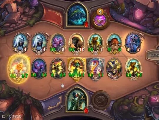 这套战吼杂毛流是非常特殊的一套搭配,不用光牙执行者,单纯利用英雄技能和战吼战棋来完成对随从的buff。