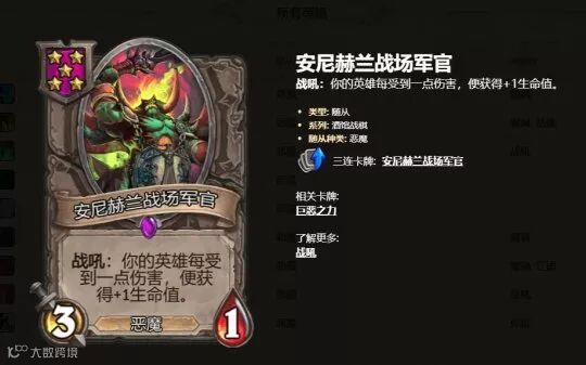摸到铜须之后,我们的工作就是找战吼随从来给场面上的随从加身材。安尼赫兰战场军官是非常关键的一张牌,在后期我们甚至可以通过这一张牌来完成翻盘;