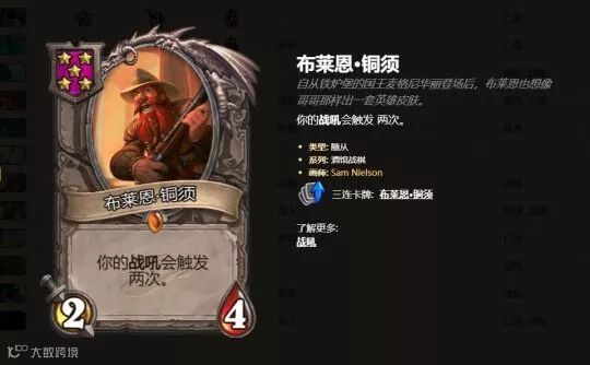 铜须一定不要追三连,在场面或者血量有压力的情况下要及时卖掉再找,不过当打出战场军官的时候,场上是一定要有一张铜须来确保触发双倍战吼的。
