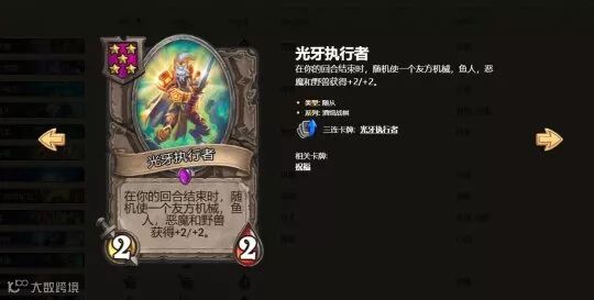 光牙执行者虽然表面看起来数据并不起眼,但是如果能够满足己方场上有四个随从,那么光牙执行者为全队带来的就是+8/+8的巨大属性提升。