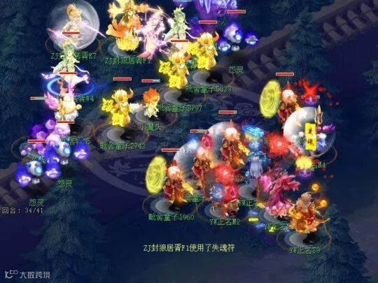 第8回合,观战方给花果山拉起的法连,次回合对战方也给普陀上法连,然后天机城破血加普陀点死花果山,观战方的化生一直活血很费蓝,这样下去蓝量非常吃紧。而且,对战方天机城变身后,输出很高,平时都能打出4000多的数据。