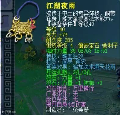接着是项链,破血狂攻加神农,还点化了套装效果,着实不错。