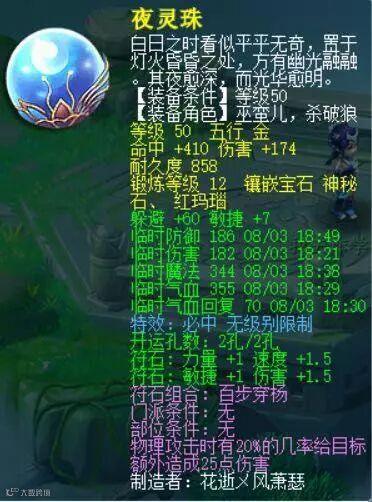 先来一把50级武器,属性相当不错,而且还必中和无级别特效,12段宝石开2孔,也是一件不可多得的低级神器。