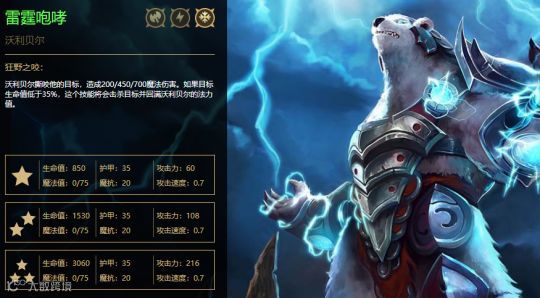 海洋羁绊每3秒回复的35点蓝量,也会使得狗熊在刚开场阶段可以快速释放技能大开杀戒。而奥恩为敌方所附加的“易损”BUFF,还会使得狗熊增加对敌人20%的暴击率。