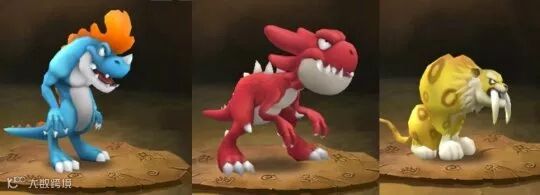 ▲经典宠物还原,《石器时代M》蓝人龙、红暴与金虎