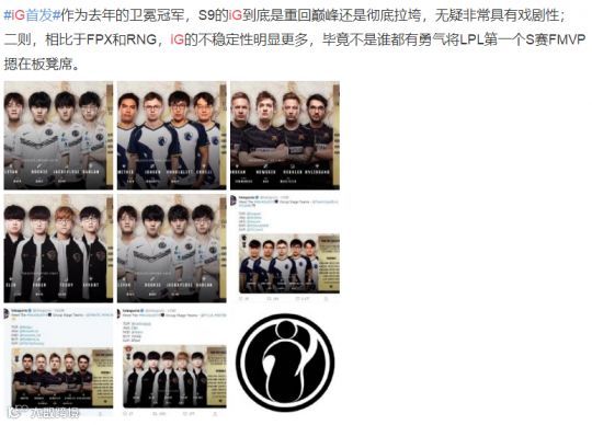 IG战队目前公布的首发名单为上单TheShy;打野Leyan;中单Rookie;ADCJackeyLove;辅助Baolan,教练为MAFA,替补锦鲤位则是老牌大哥DUKE与NING。