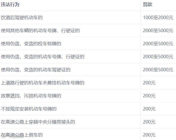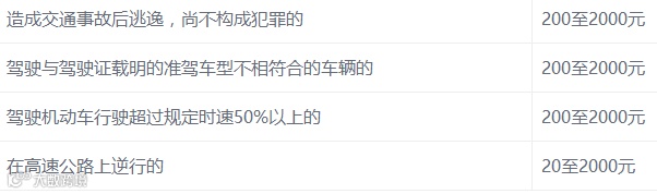 | 驾驶拼装的机动车上道路行驶的 | 200至2000元 |