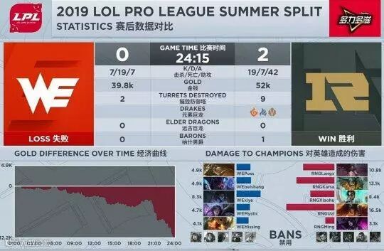 可以看出第一局UZI的贡献还是很大的,毕竟他也是团队的核心之一。在第二局中Karsa打野带起了节奏,前期独砍六个人头,凭借着巨大的优势,Karsa的奥拉夫俨然成为了莽夫之王,前期经济压制2000,后期稳定的团战胜利拿下大龙,23分半RNG下路推进,强势碾压击杀WE三人,一波推平基地拿下比赛!在今天的BO3RNG以2-0拿下比赛,看得出状态非常不错。