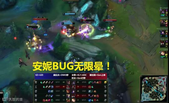 UZI看了这安妮都被气乐了,毕竟是队友,有了这BUG队友那还不是稳赢的;这安妮在中路只有能控到狐狸一下,狐狸就不会再醒来了。
