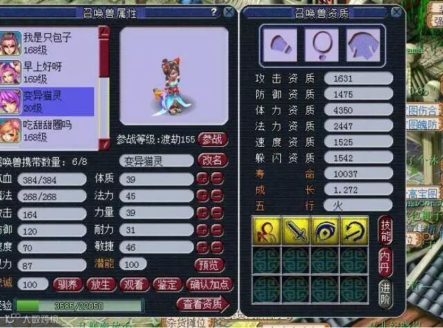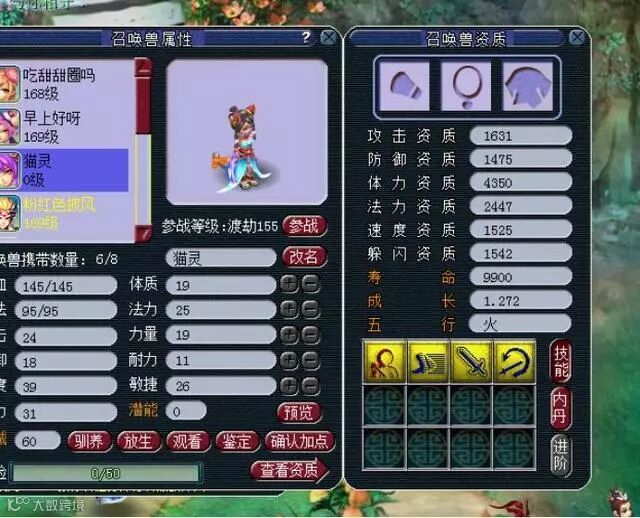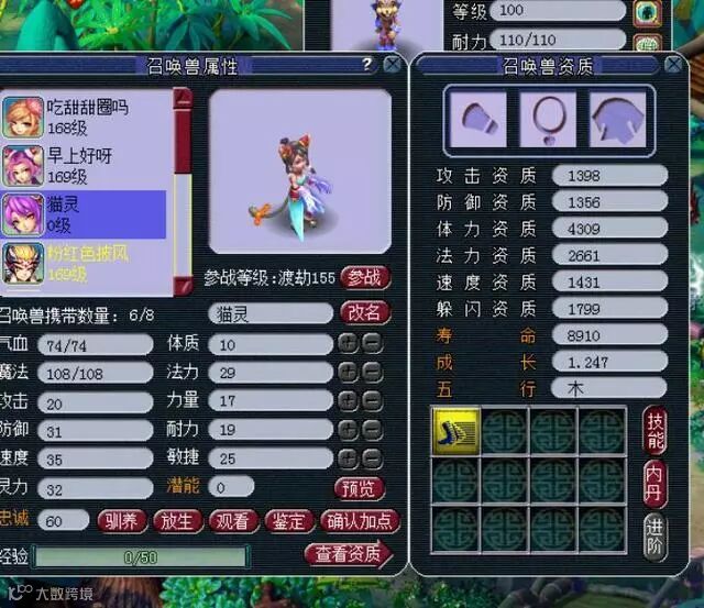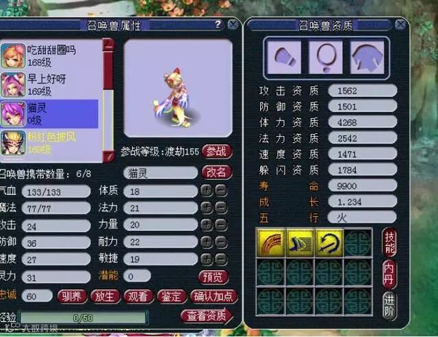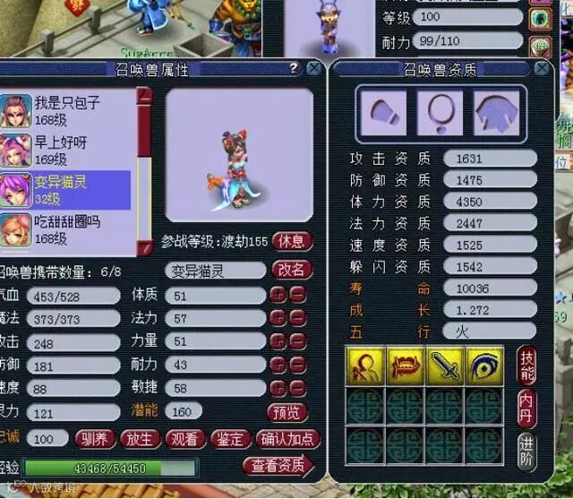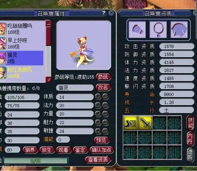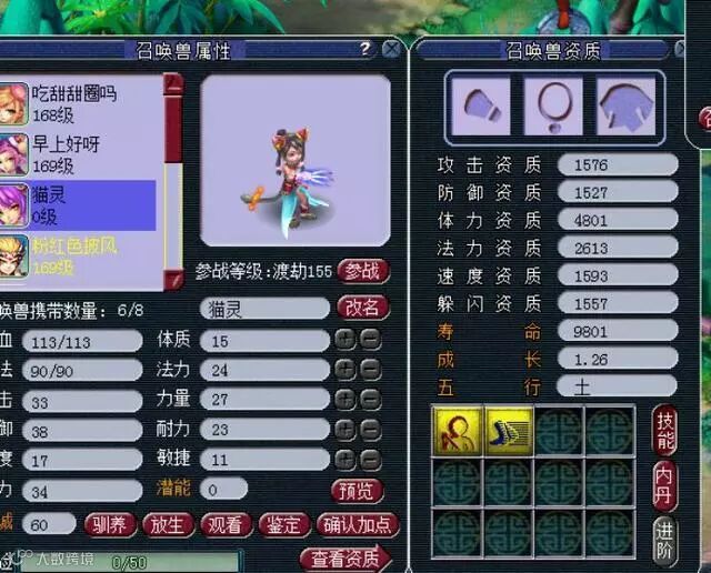 这就是我们玩家准备的变异猫灵,看这资质和技能,有点凄惨!