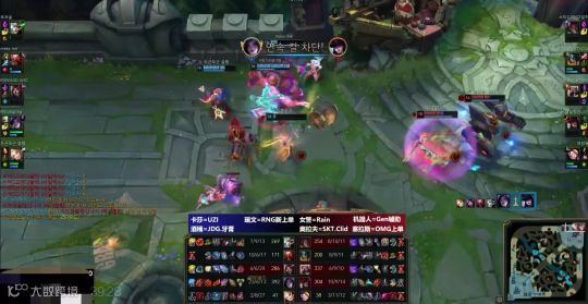 锐雯在团战中开始各种迷路了,被对面抓住秒掉,但团战还是要接的,在少一个人的情况下,UZI团战疯狂输出,但还是输了。