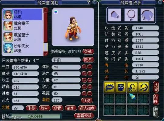 这次是6技能童子和8技能豹子。如果你说这炼妖不高端,那就错了。