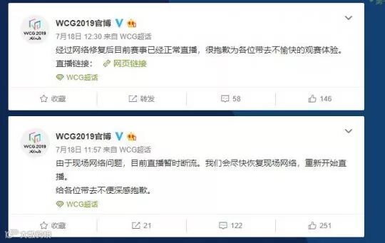 更为有趣的是,炉石传说官方微博甚至都没有报道WCG的比赛结果……作为关注度比较高的电竞赛事,直播第一天就出现了设备故障断流了……2019年,手机直播只要有信号就能直播的年代,WCG断流了……