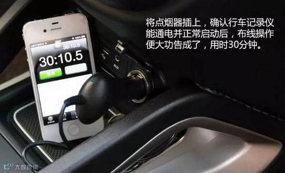 最后,将电源线的点烟器插口插上,确认行车记录仪能通电并正常启动后,布线操作便大功告成了。