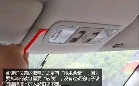 这种方法比第一种方法更有“技术含量”,因为要拆卸车顶灯,而且还需要“破线”,没有过硬的电子设备维修技术的人恐怕是搞不定的了。