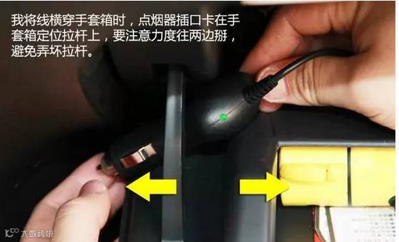 这辆车的饰板塑料都比较硬,而且密封性也做得比较好,布暗线的话比较费力,加上作业空间小,位置确实不好把握。我将线横穿手套箱时遇到一个小小的麻烦——点烟器插口卡在手套箱定位拉杆上了,我费了很大的劲才解决问题。将线穿过手套箱定位拉杆时要注意力度,避免弄坏拉杆。