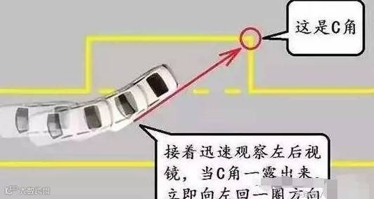 看右后视镜打满第一把方向后,看左后视镜,等内库角出现,回正方向。