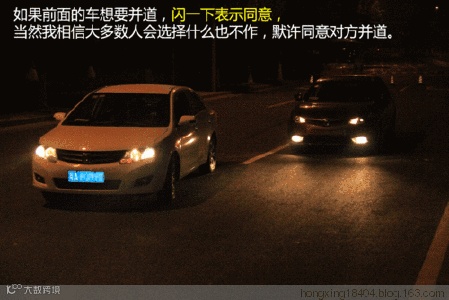 灯语:大灯一闪“同意”,大灯连闪“拒绝”