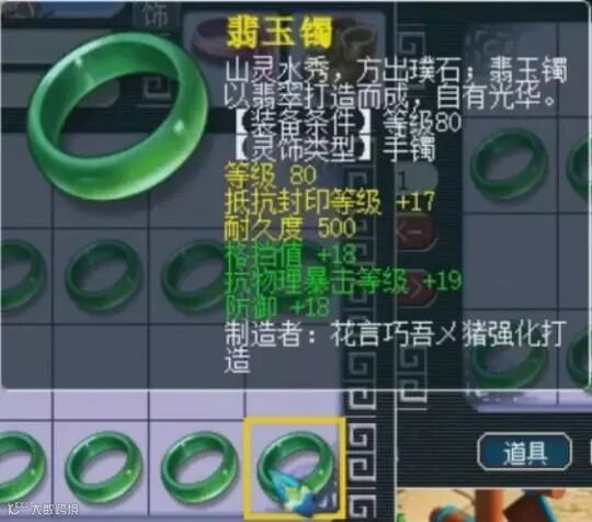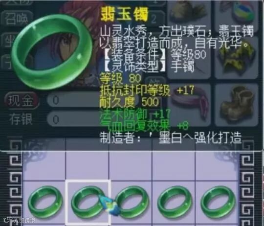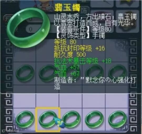 第九个手镯:法术防御、气血回复。这个不说了,分解货。