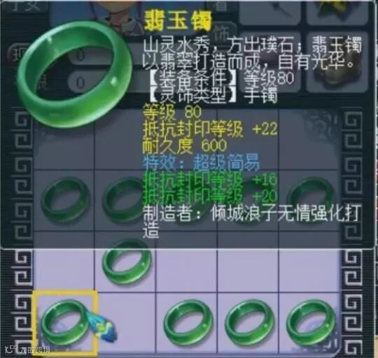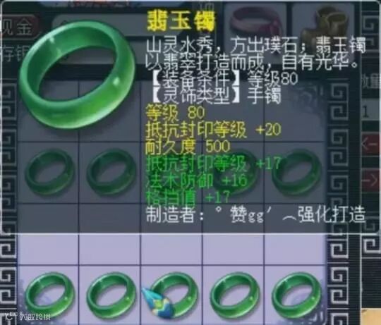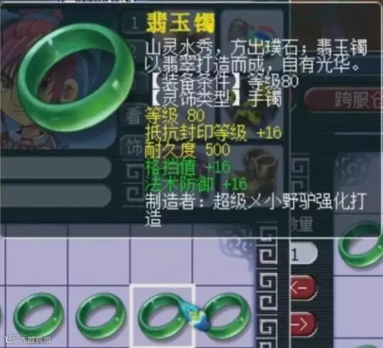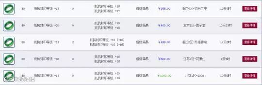 现在精锐组都带抗封灵饰,要是能再多一条属性,不管是抗封,气血还是防御都能卖个天价,可是只有两条的话就不怎么值钱了,藏宝阁最低价355。相比这个手镯多了一条法术防御的灵饰,藏宝阁摆105555。