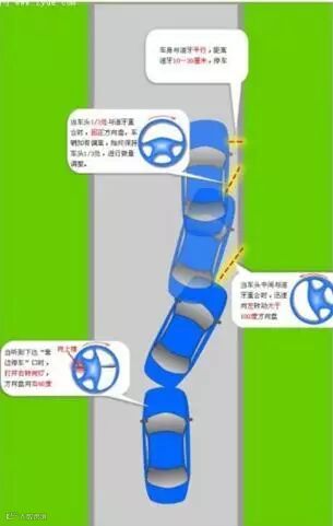 首先,与马路牙子成45角倒车,为了观察的更贴切,可以把反光镜下调,直到能够看到马路牙子跟前边的车门把手交叉为止。这个时候就不要只顾着倒车了,在倒车的同时要慢慢回打方向盘,慢慢的向路边靠近。直到能够看到前车门把手跟马路牙子好像是刚刚接触就可以了。如果你的车门把手是内嵌式的,只要后轮轮毂能与马路牙子对接也算是停好车了。